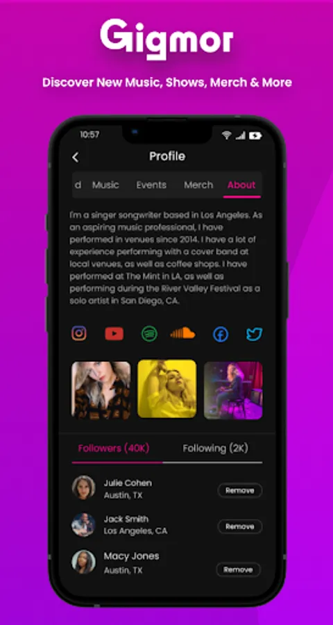 Gigmor helps artists get booked, grow their fan communities and earn income through ticket sales, tips, subscriptions, merch sales, and more. Gigmor’s community features empower artists to manage and grow their fan bases.