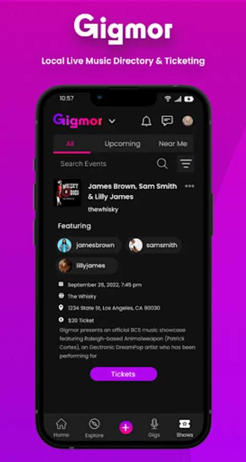 Gigmor helps music fans discover live music in their area, as well as new artists and like-minded fans.