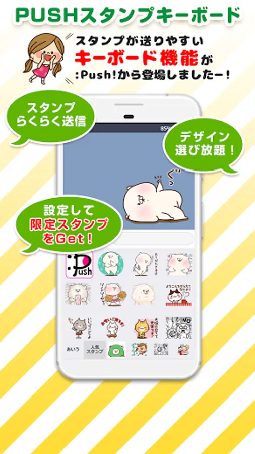 ・ You can change your smartphone keyboard to your favorite character! The changed keyboard has a built-in stamp, so it's very easy to send stamps ♪