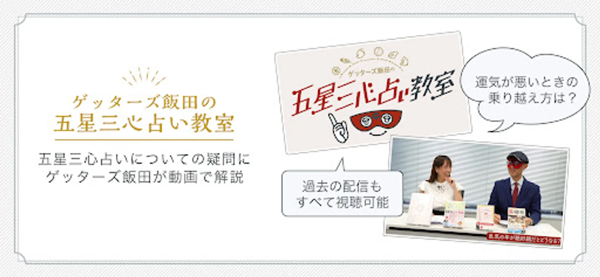 The strongest fortune-teller in the entertainment world, Getters Iida's unique five-star, three-mind fortune-telling will tell you everything about you.