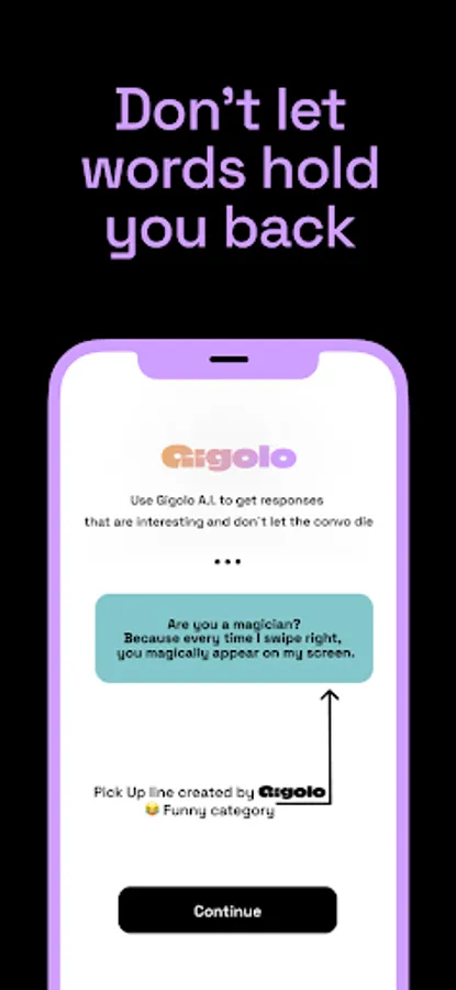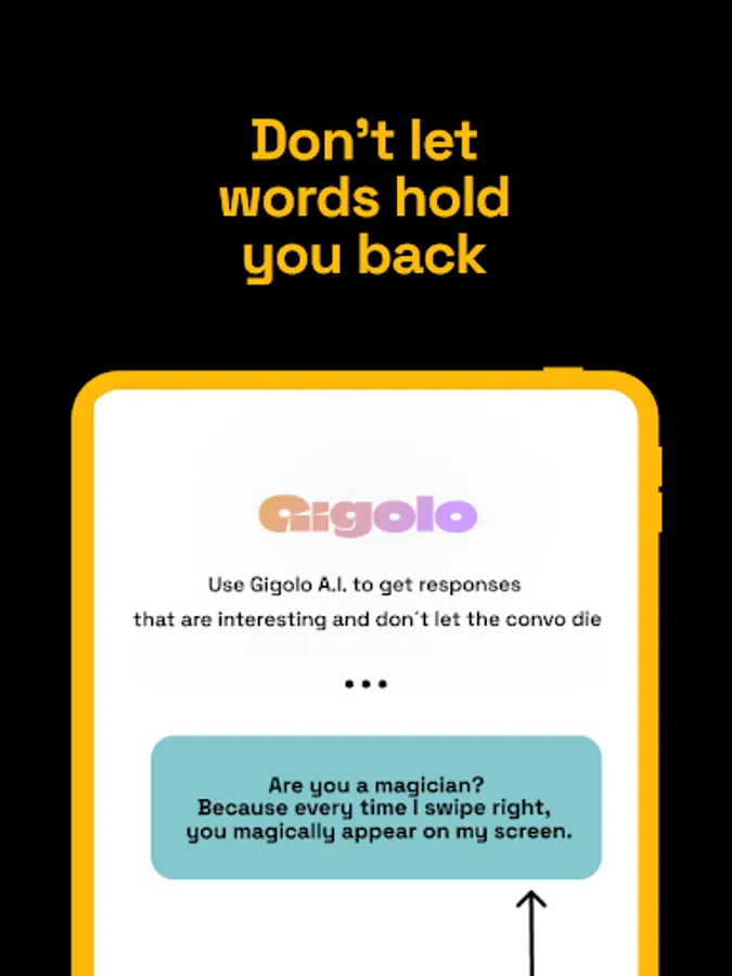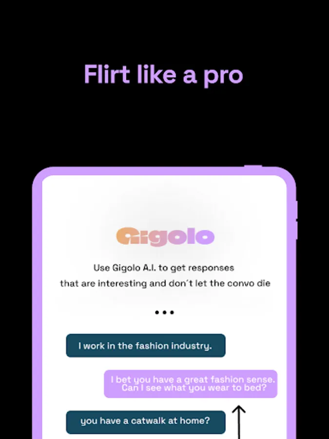Are you tired of struggling to come up with clever responses to keep your conversations going? Say goodbye to those awkward silences and hello to gigolo, the app that gives you instant access to a range of smart, flirty answers. Whether you’re using dating apps or flirting with someone through messages or social media, gigolo can help you keep the conversation flowing with ease. With a variety of categories to choose from, you can find the perfect response for any situation - from witty comebacks to playful banter. Impress your crush or show off your personality with gigolo - never be at a loss for words again& start flirting like a pro!