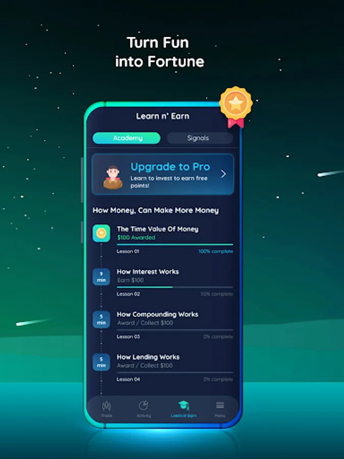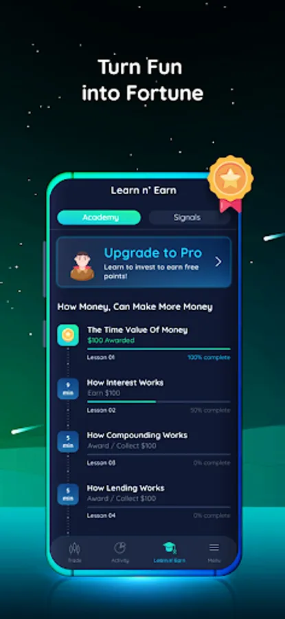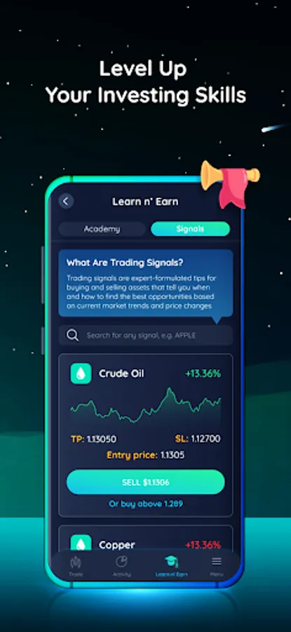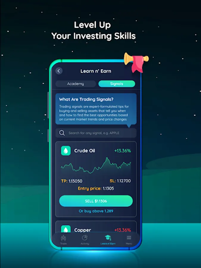 From beginner to advanced level, our app offers an immersive experience to all users aged 10 to 60. It's an exciting and educational game that helps you to understand how to invest, trade, and build a winning portfolio like a pro. Our trading signals, educational courses, and other useful educational tools make the learning process fun and easy.