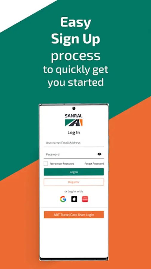 Please note that if you already have a SANRAL account you don't have to register again to use this App, simply use your existing credentials to log in (the same details you would use for the SANRAL website).