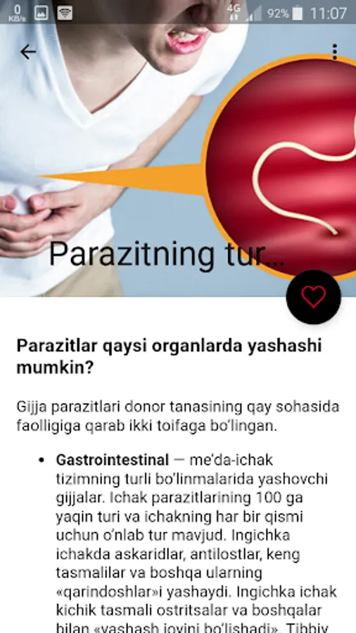 Zamonaviy tibbiyot ma’lumotlari shuni ko’rsatadiki, ko’plab kasalliklar gijjalar mavjudligi bilan bog’liq. Masalan, parazitlar bilan uzoq vaqt davomida kasallanganlik bilan onkologiya o’rtasidagi aloqa klinik jihatdan isbotlangan. Insonlarda gijjalar borligini ko’rsatadigan belgilar ko’pincha shifokorlar va bemorlar tomonidan noto’g’ri talqin qilinadi. Ular oshqozon-ichak tizimining mavjud bo’lmagan kasalliklarini davolashga kirishadilar. Bemorlar holsizlikdan shikoyat qilib, uzoq vaqt davomida shifokorma-shifokor yurishlari mumkin. Ular keraksiz dori-darmonlarni qabul qilish orqali vaqt, pul va hatto sog’lig’iga salbiy ta’sir ko’rsatadilar. Natijada, shifo faqat alomatlar sababini bartaraf etish bilan keladi. Tegishli davolanishdan so’ng, barcha simptomlar bemorni tashvishga solmaydi.