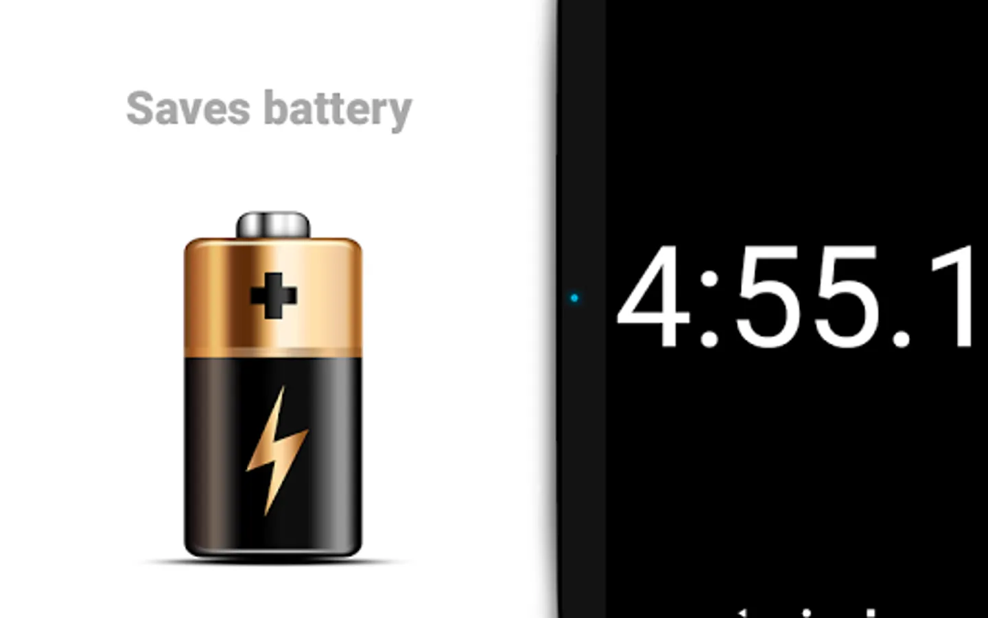Many of the top flagship phones use AMOLED display technology, and the popular wisdom has always been that you can save substantial power on these devices by using apps with a black interface. In many cases, the screen should be turned on while the clock is running. With "Simple, Big Timer" save your battery as most of the pixel on the screen are black :)