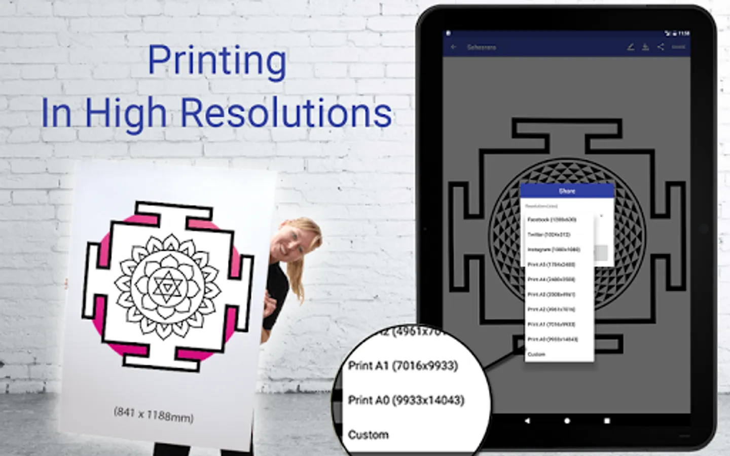 1. Hang the YANTRA on a wall facing North or East, placing the center of the YANTRA at the level of your eyes, you may use your phone/tablet, VR-Glasses, or simply print the YANTRA.