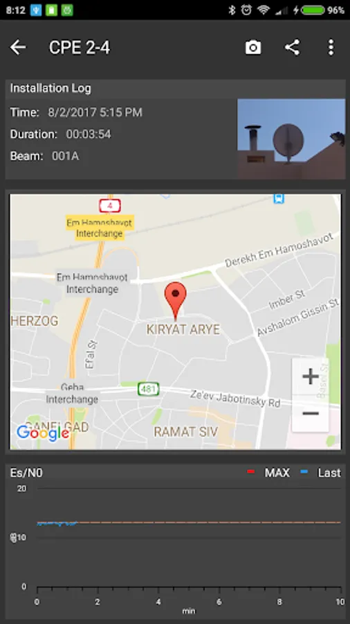 The application can be used to assist in installing and configuring SkyEdge II-c CPEs made by Gilat Satellite Networks Ltd using a smartphone. The application provides a complete solution for the CPE installation process, from the choice of a suitable beam spot before the installation to the verification of the signal strength during and after the installation.