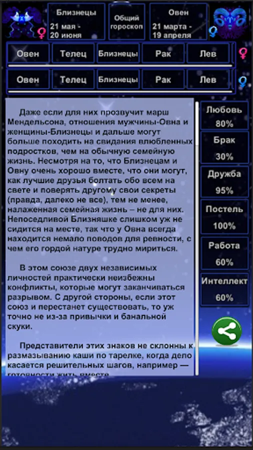What awaits you in life together with your loved ones? This is largely dependent on the compatibility of zodiac signs under which you were born. To find out the prospects of its life together, use this app.