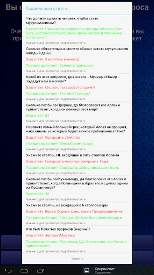 Also at the end of the test it is possible to see the detailed answers to questions Delilah