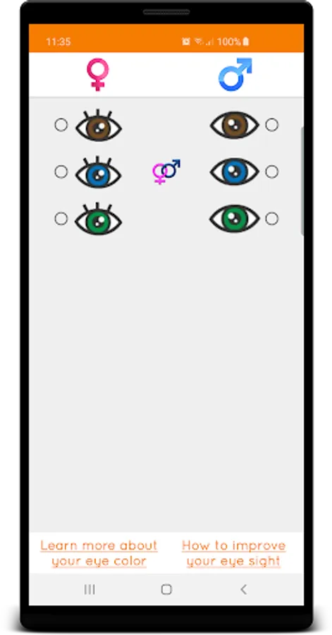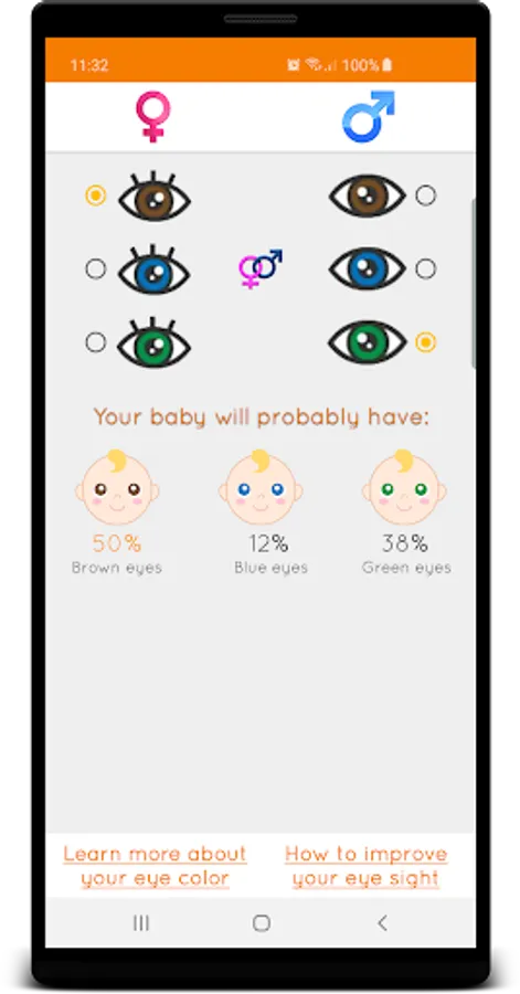 The app predicts which eye color your baby will have according to your eye color and your partner eye color.