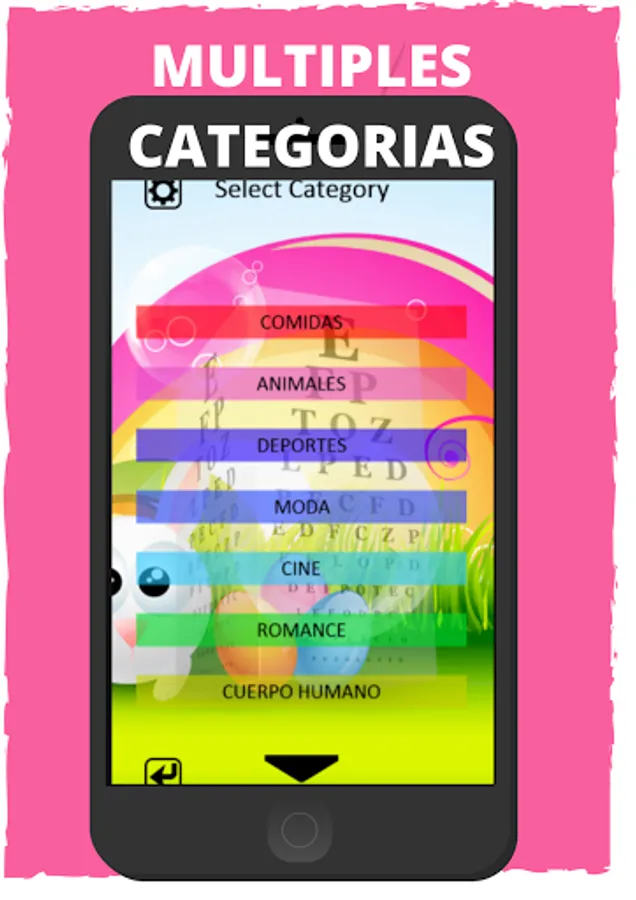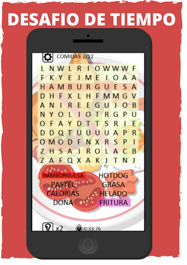 In "Word Search Desafío en Español" we have several categories and within them many word searches to complete in the shortest time possible.