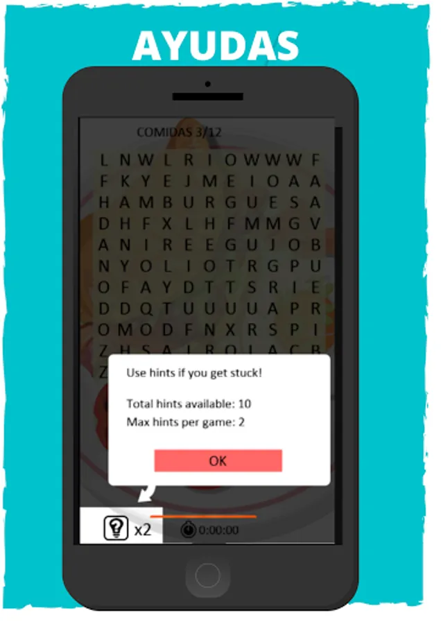 Word Search Desafío en Español has a timer which does not tell the time we managed to find all the words on the list and complete the level.