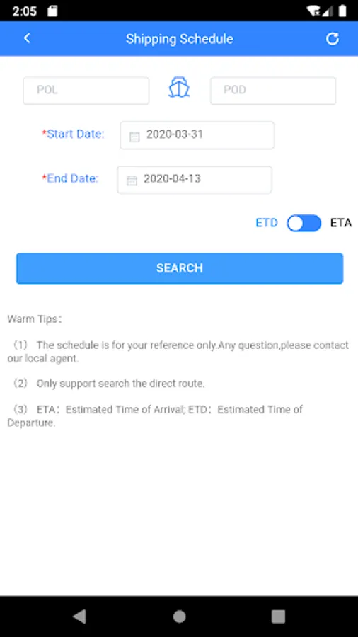 海丰集运业务查询系统,支持船期查询、船舶动态查询、货物跟踪、滞期费查询等功能。
