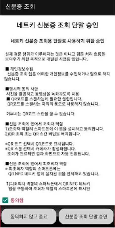 If the QR code is scanned with the consent of the person being viewed at the authorized ID inquiry terminal, detailed information not listed on the ID card will be searched in the inquiry terminal.