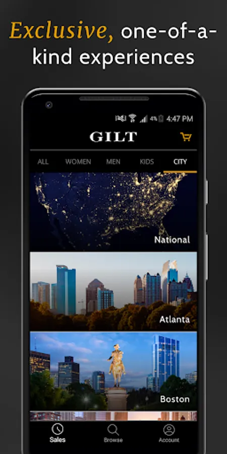 Download our app and discover Gilt's ever-changing assortment of top designers and one-of-a-kind experiences – all right at your fingertips. Shop on the go and get incredible steals for women, men, kids and home to inspire every facet of your life. Plus, find deals for unforgettable experiences available in your city.