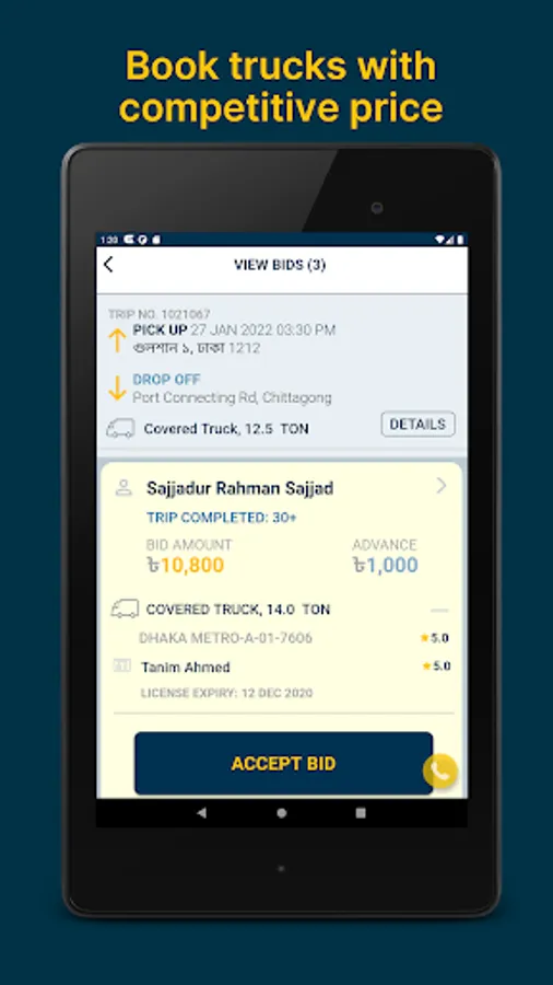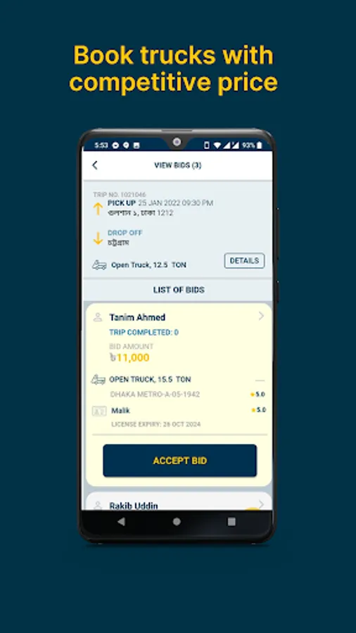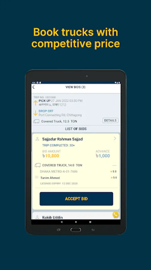 Step 3 – Create trips anytime, anywhere. You will receive bids in real-time from various registered service providers. Choose the best one for you.