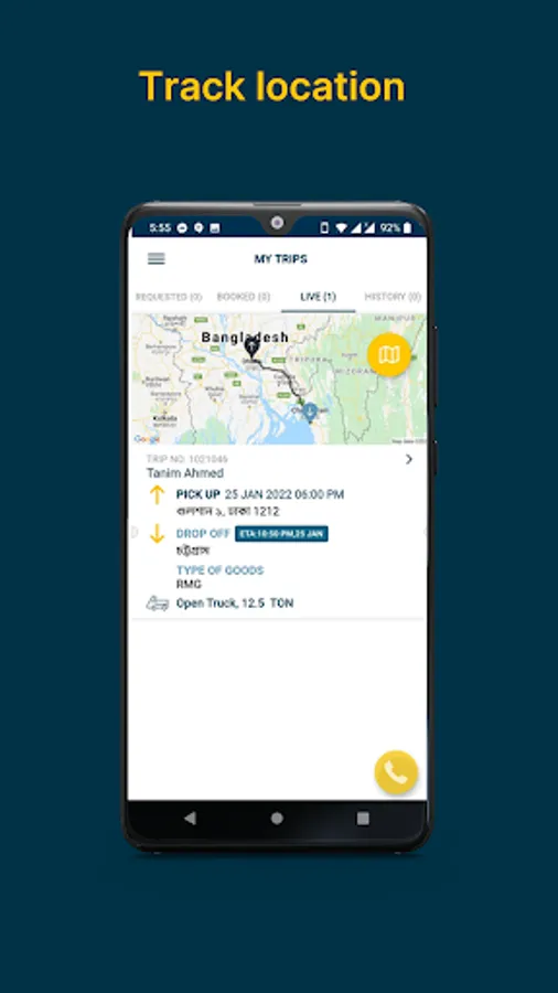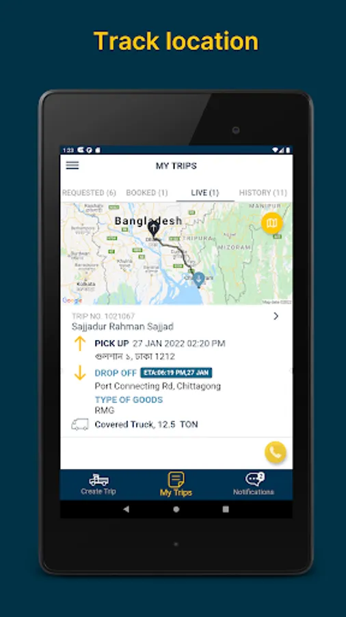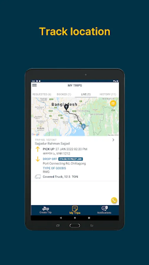 Step 4 – Once the trip is live, track your goods. Most of our vehicles are equipped with a tracker facility. Once the trip ends, you will automatically receive an invoice.