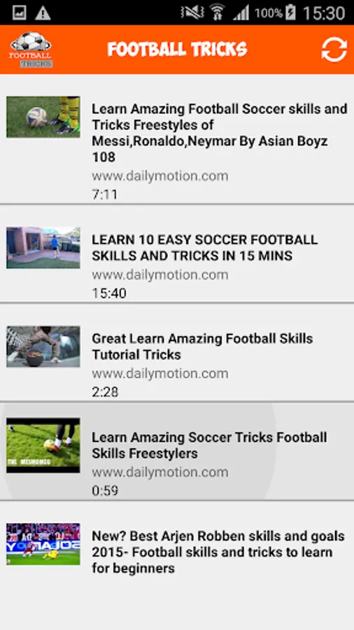 In this App you can find collection of best football tricks videos of the renowned players. Selection is being made from the Dailymotion.com and compatible to all handsets. All you need to simply download the App and learn some amazing football tricks.