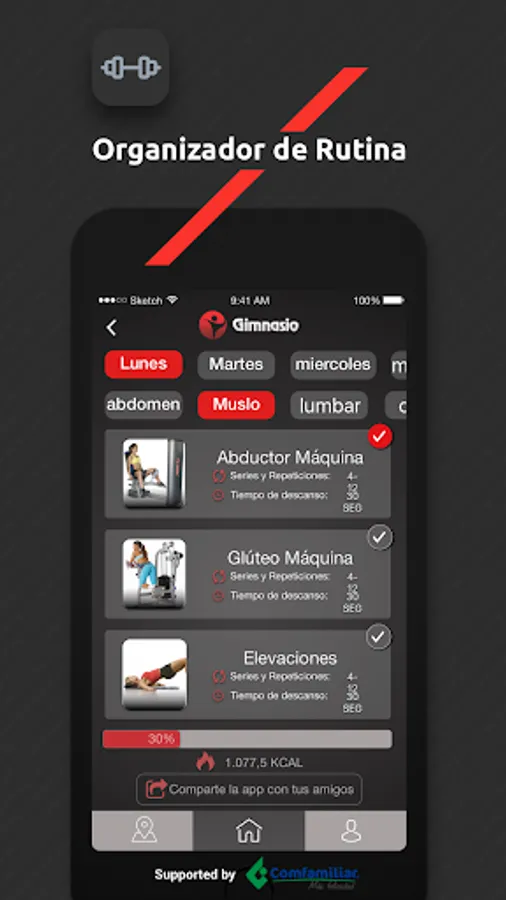 App for use by members of Comfamiliar del Huila, this app allows you to have a better experience when using the gym. Control routines, schedules, daily seguimento of progress in their fitness