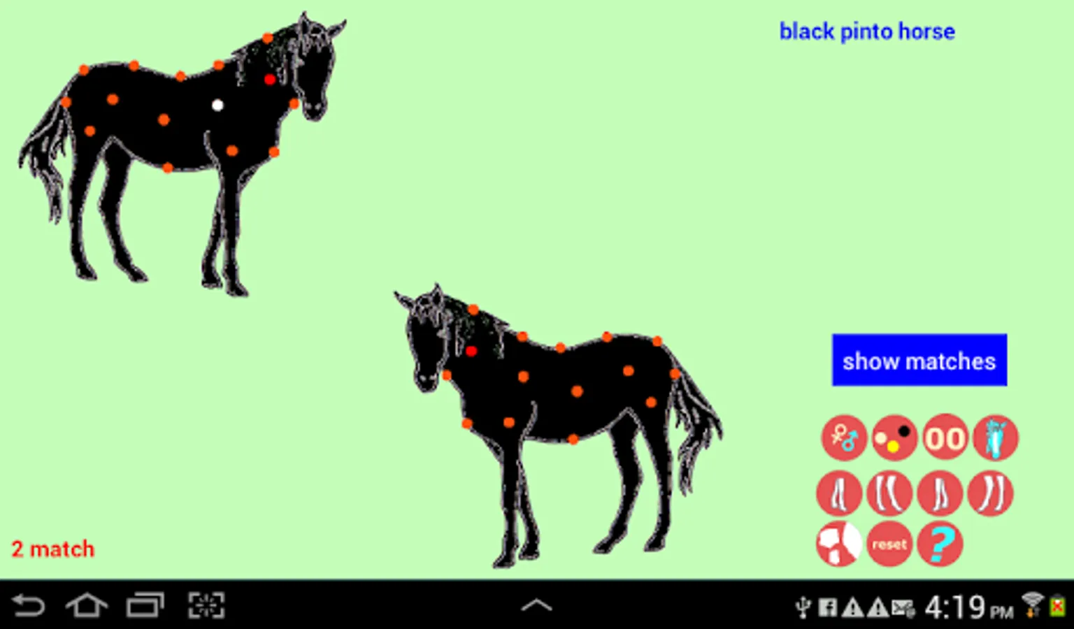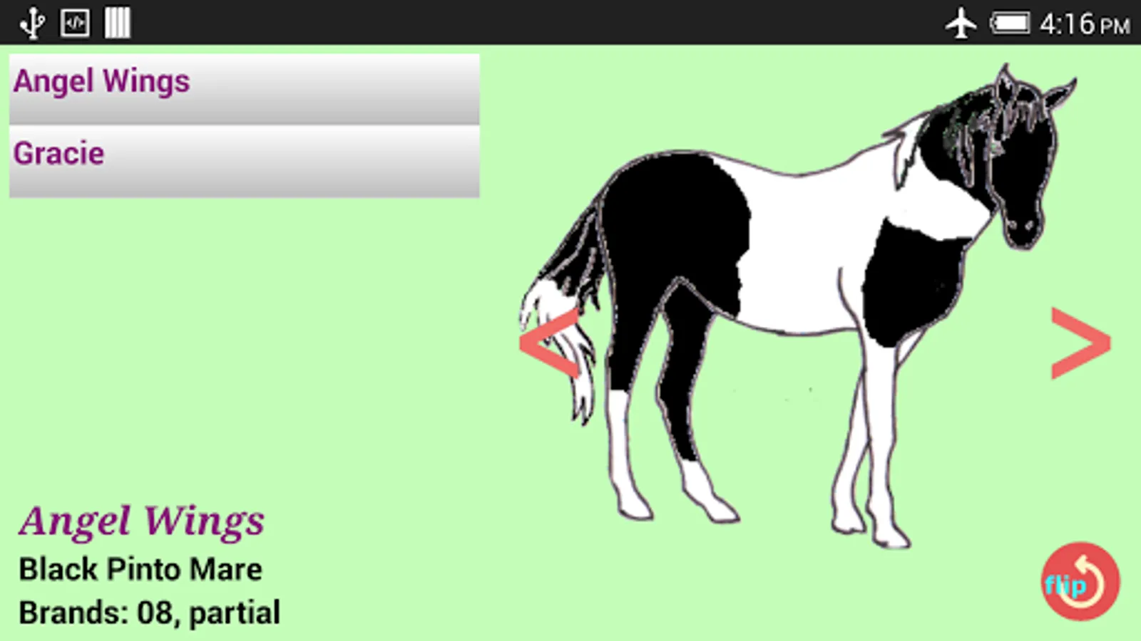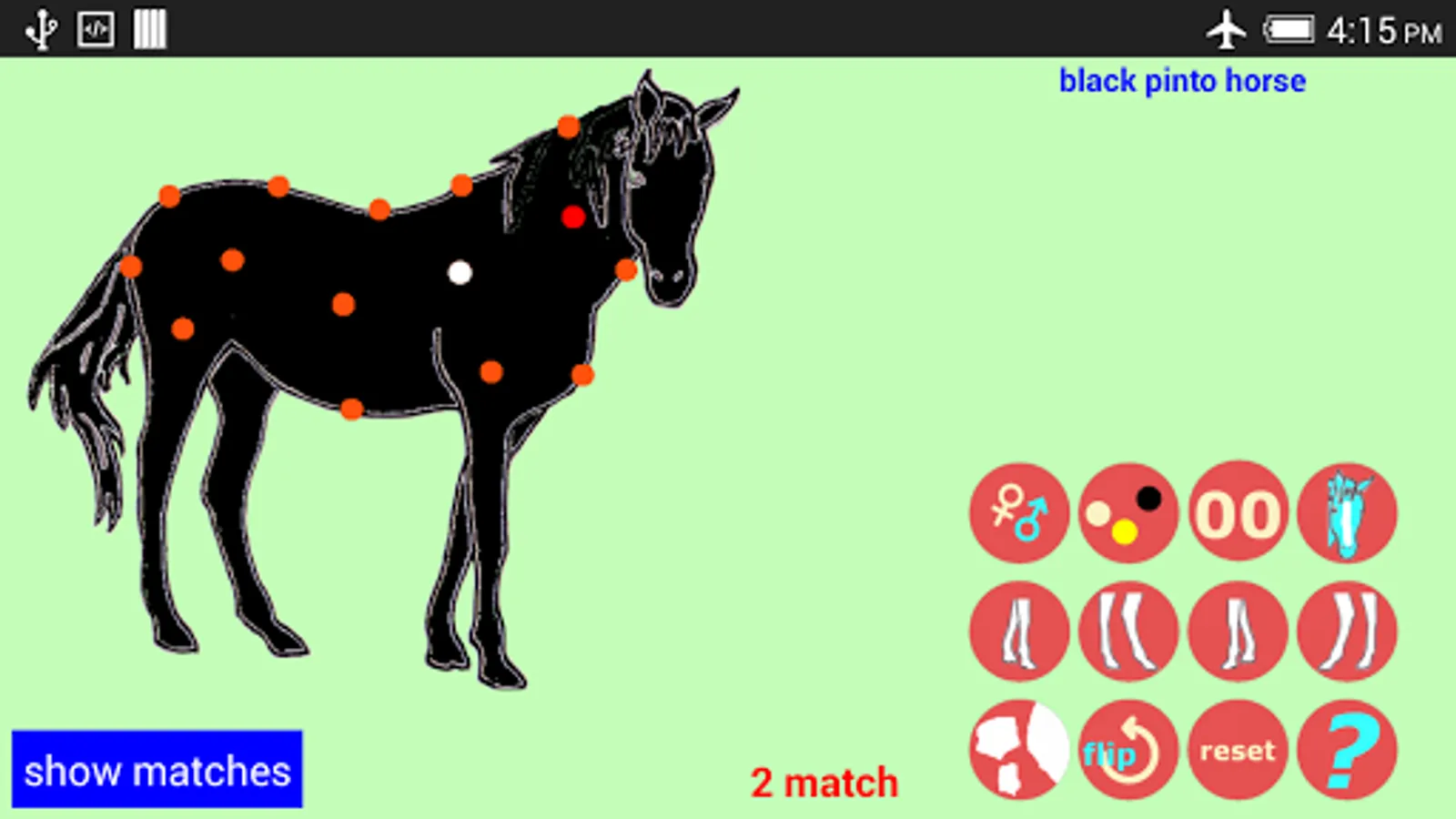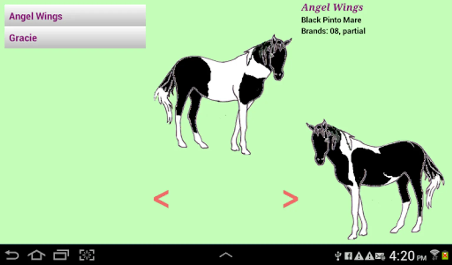 A simple search wizard allows you to narrow the list of possibilities using options that include gender, color, brand, face markings, leg markings, and pinto markings. Simply press a button and select an option from a list.