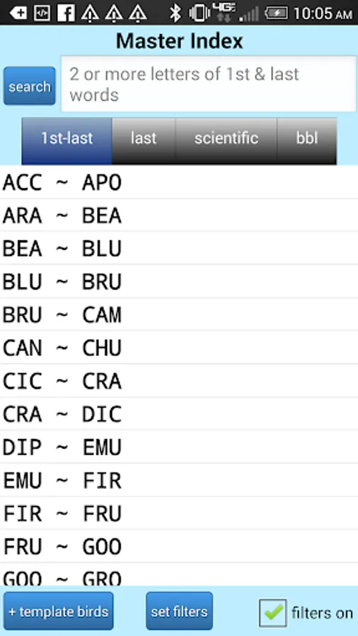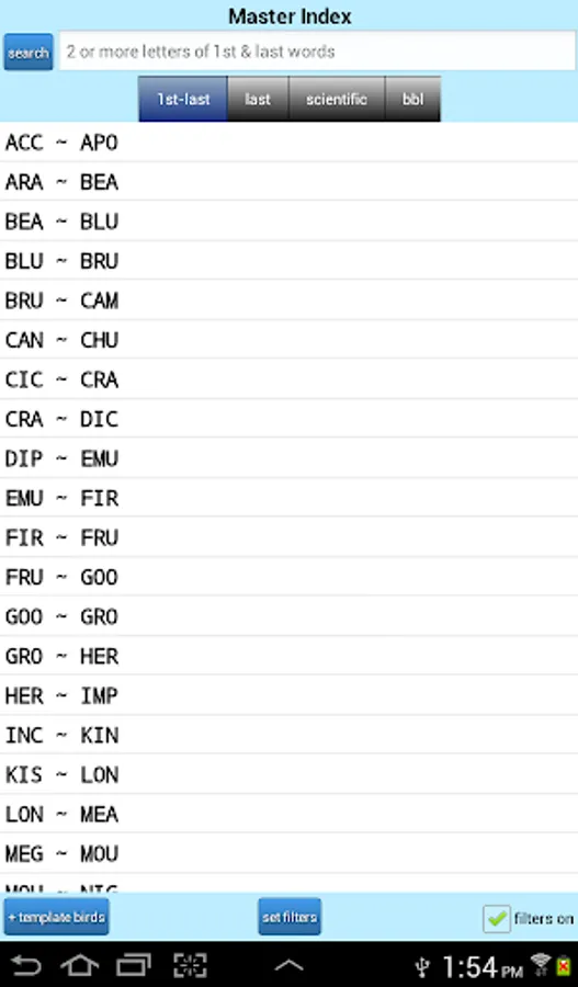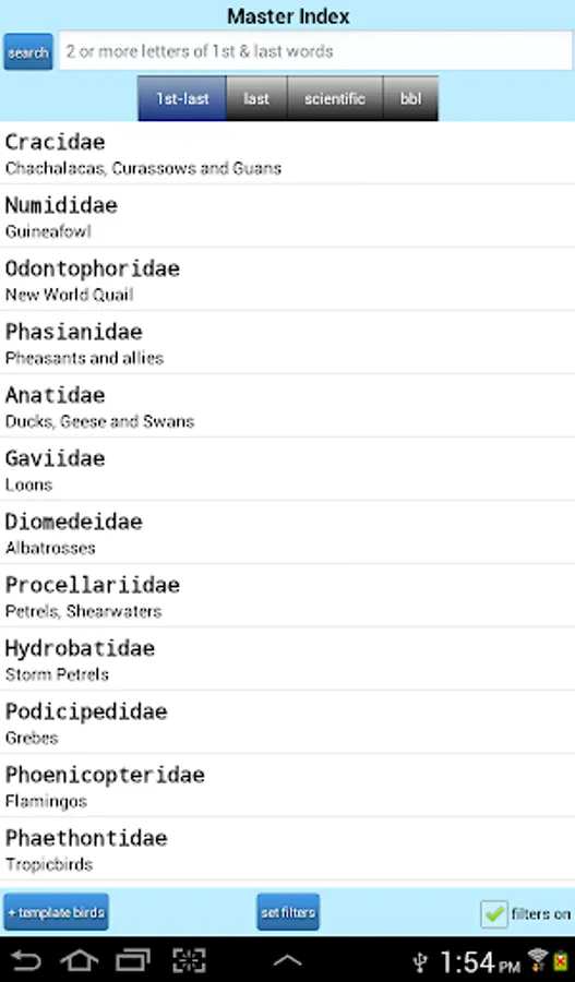 Custom Templates - Create pre-defined lists of birds. Use them to populate lists with sightings with zero counts. Or use to filter the bird database.