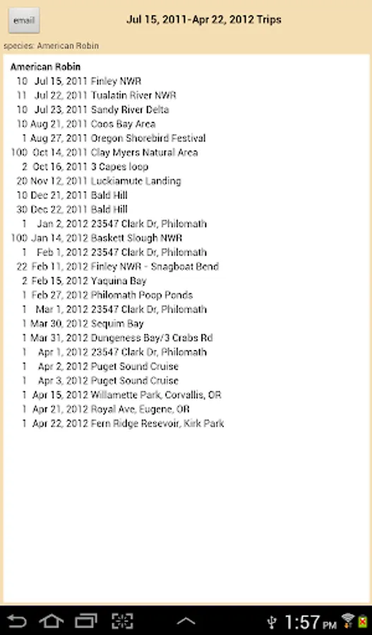 My Bird Observations is an ultra-easy, intuitive app for creating bird sightings lists.