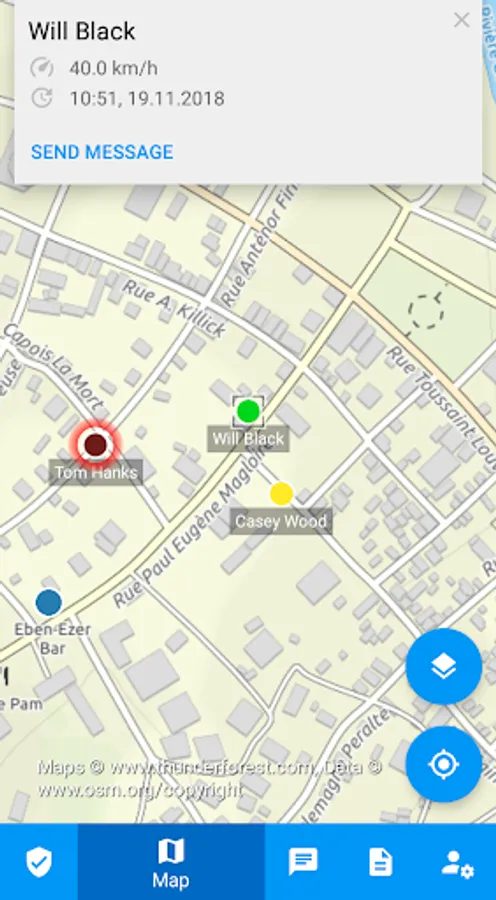 Pressing the SOS button raises an alarm in GINA System which is received by connected operators and other GINA GO users (if enabled). The operators are members of organization typically using some other client application (e.g. GINA Central) and can be notified about the alert also by email or SMS.
