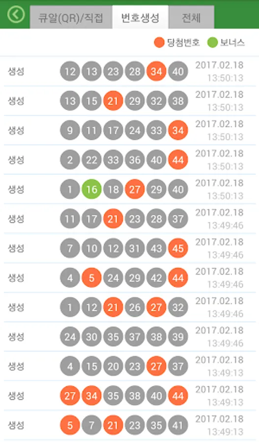 - 번호목록 조회시 회차별 당첨결과와 비교 표시