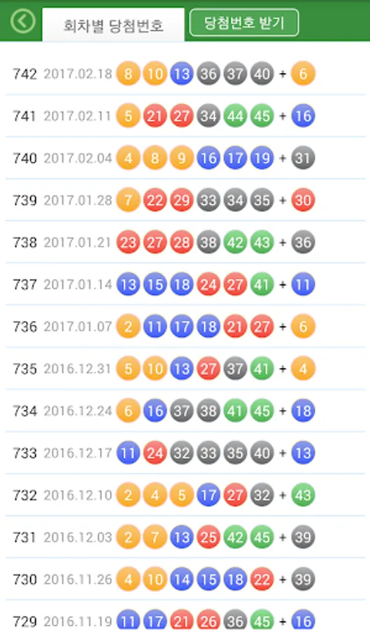 - 회차별 당첨번호 조회