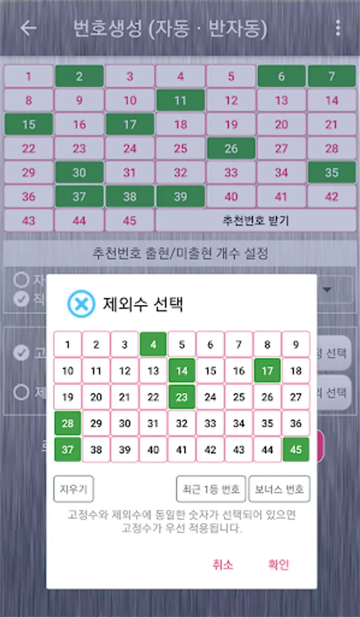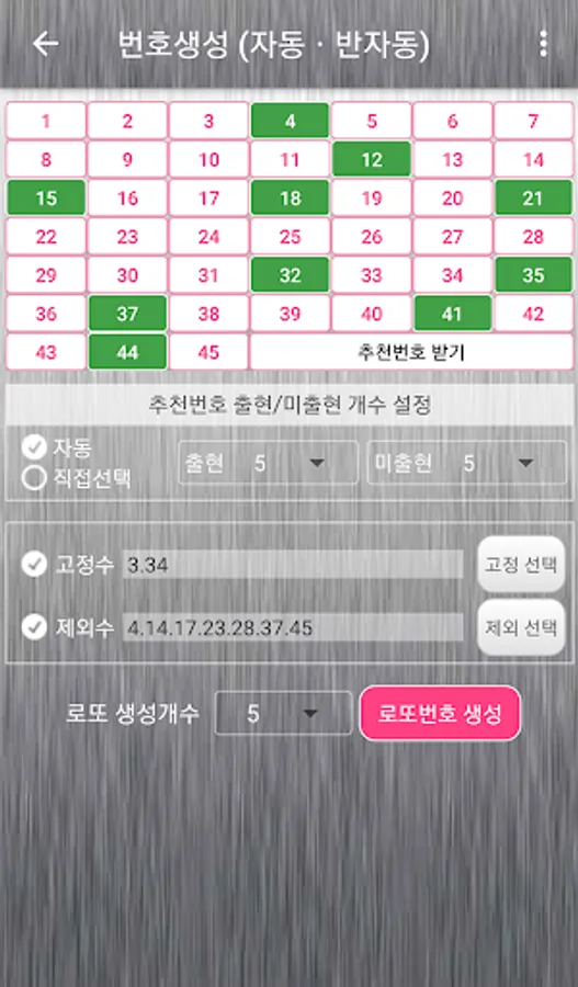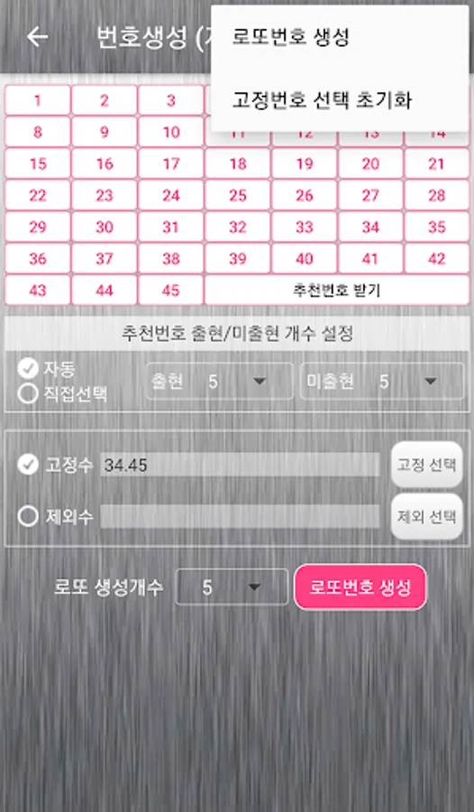 A semi-automatic, automatic filter type that selects and creates a number of exclusions from a large number of fixed numbers, and an automatic method that extracts without a fixed number reflects the number that does not appear and generates the expected lottery number.
