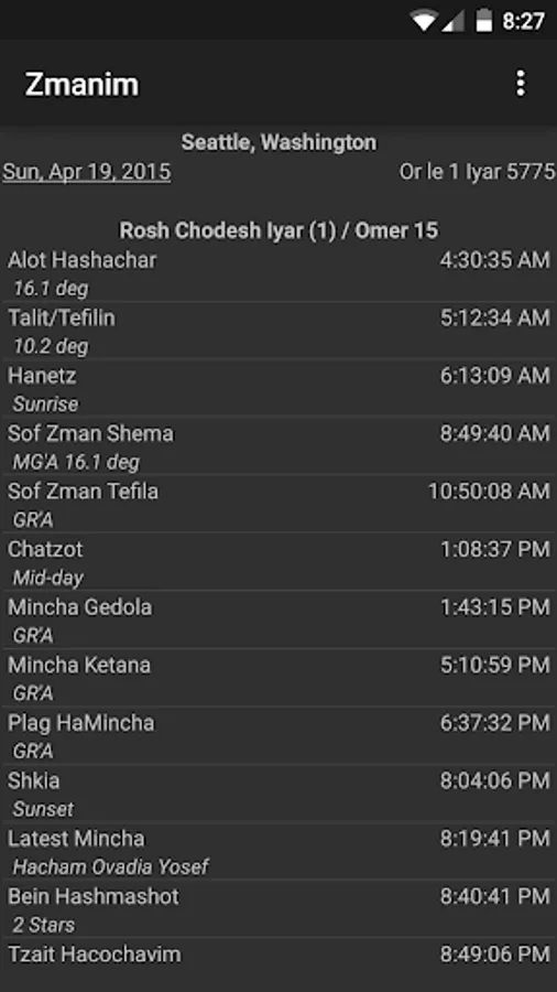 * 90+ different zmanim, including GR'A & MG'A-click to select