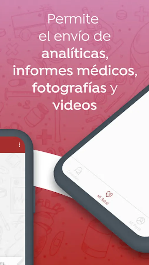 - Share images, videos and documents (analytical, diagnostic tests, etc.) and access them through the medical history.