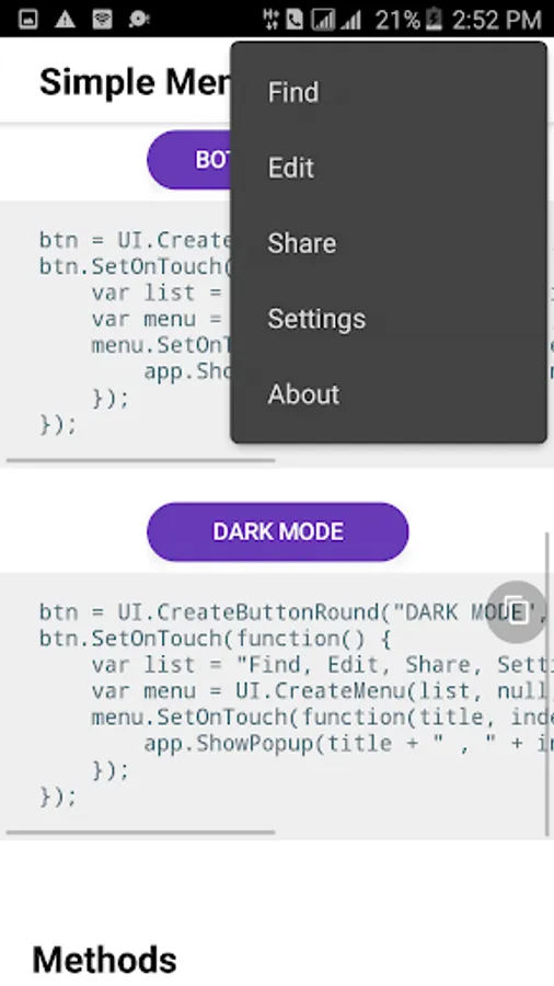 DroidScript UI Kit is a DroidScript plugin for creating elegant and modern UI inspired from Google's Material Design. It uses the available controls from DroidScript to implement designs, from typography and buttons to menus and pickers. We are constantly adding new design to the Kit and if you like to request new widget. Please let us know and we might take some time to craft it.