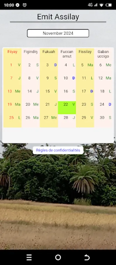 Emit Assilay is a Joola calendar. Among the Joolas, the week is made up of six (6) days divided between field work in concessions, activities for the benefit of generations, associative activities and days of rest.