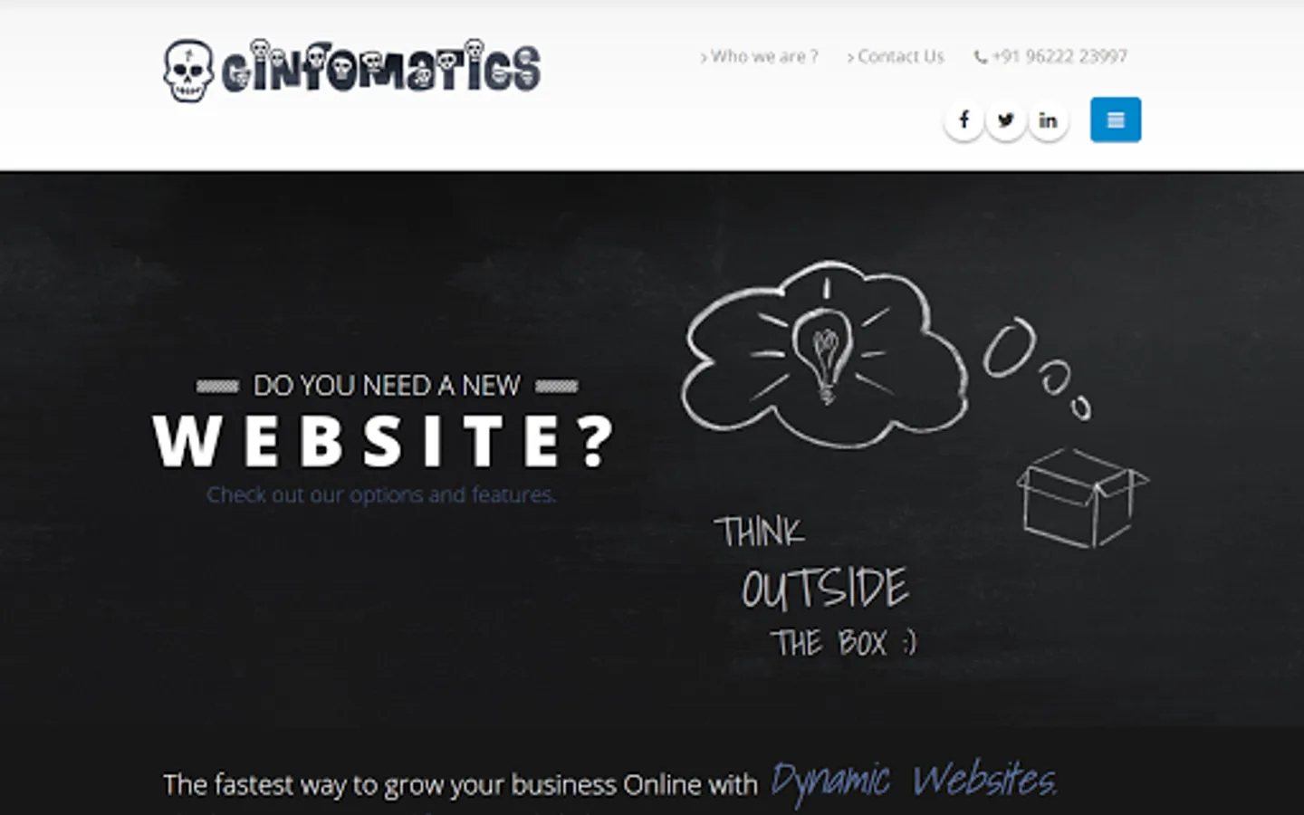 GinfoMatics is a Website + Software + Mobile Applications development Company. We are specialize in Creating Creative Website designs, Responsive Websites Development and PHP Experts. We provide conceptual, affordable, functional and presentational development for the global business community through out-of-the-box web strategy, design, development and marketing solutions.