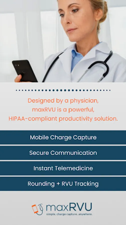 maxRVU is a mobile charge capture solution for hospitals, physician practices, and even residents. Capture ICD/CPT® codes at point of service and immediately send them to your biller.