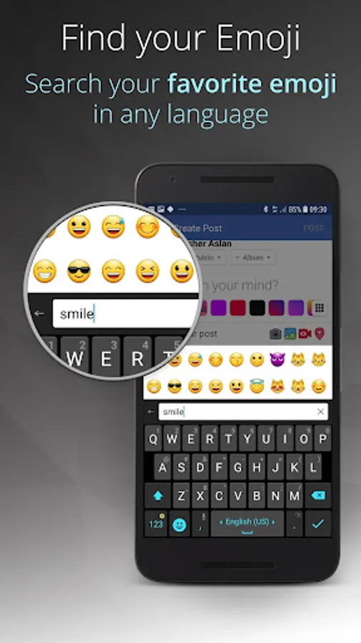 Support for over 50 languages. Swipe typing and even emoji prediction to accommodate your messages, emails, posts or texts. Watch how your typos, spelling mistakes and grammar errors disappear.