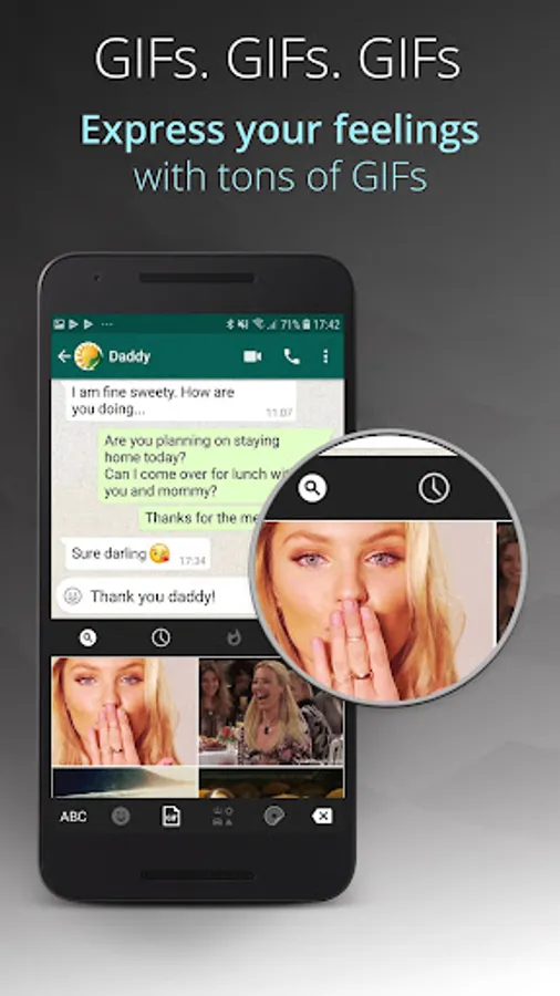 Search for emoji and GIFs directly from Ginger keyboard. - ▪ Swipe