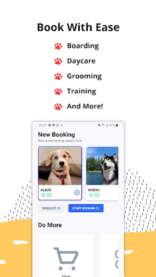 Book your pet's services with your favorite, local pet-care facilities with ease. With the Gingr for Pet Parents app, you can book reservations and appointments like boarding, daycare, grooming, and even training classes for your pet.