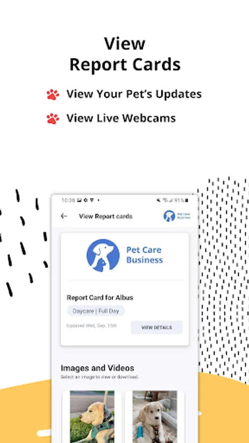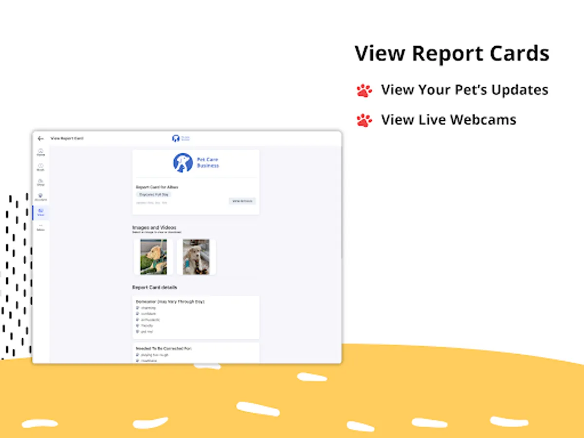Check in on your pet's paw-gress by viewing their pet report cards and live webcams from the facility to watch your pet play.