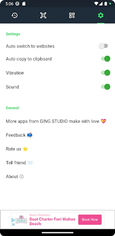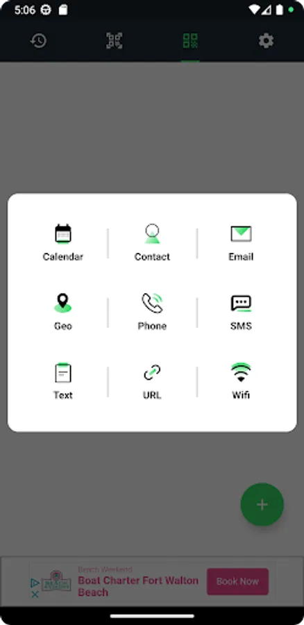 * Generate QR code from: Calendar, Contact, Email, Geo, Phone, SMS, Text, URL, Wifi.