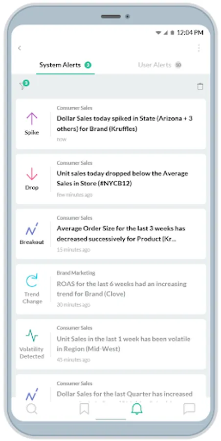 Conversations that surface the unexpected changes or anomalies in your business data and trigger automated alerts.