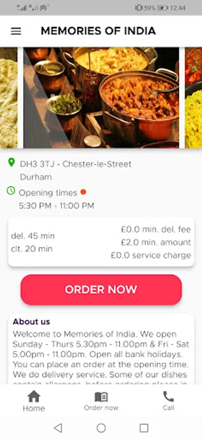 Welcome to Memories of India. We open Sunday - Thurs 5.30pm - 11.00pm & Fri - Sat 5.00pm - 11.00pm. Open all bank holidays. You can place an order at the opening time. We do delivery service. Some of our dishes contain allergens, before ordering please in form a member of staff of any allergies, some of our dishes may contain traces of nuts & seeds.