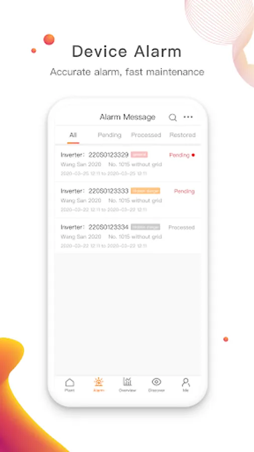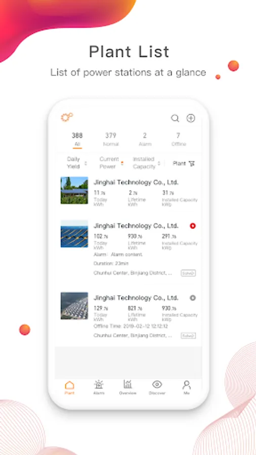 1. View real-time data of the PV plant , and get equipment condition is controlled at anytime and anywhere.