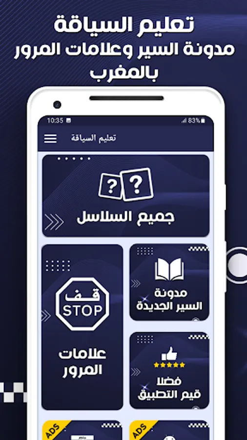 Teaching driving and traffic signs in Morocco without the net is an application that aims to help users in Morocco learn and train to drive a car and pass the driving test in Morocco. The application contains the Highway Code and traffic signs