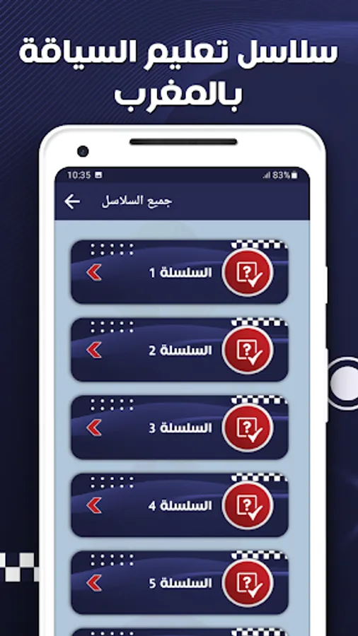 Traffic lights program in Morocco is simple and characterized by a design that works on any phone with the Android operating system. Users can view lessons and information in the application and submit practice tests and multiple-choice questions at any time and from anywhere without an Internet connection.