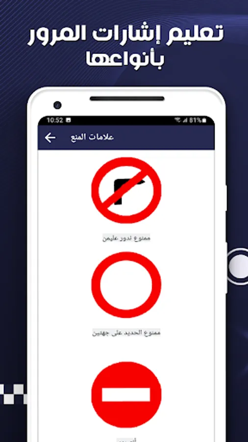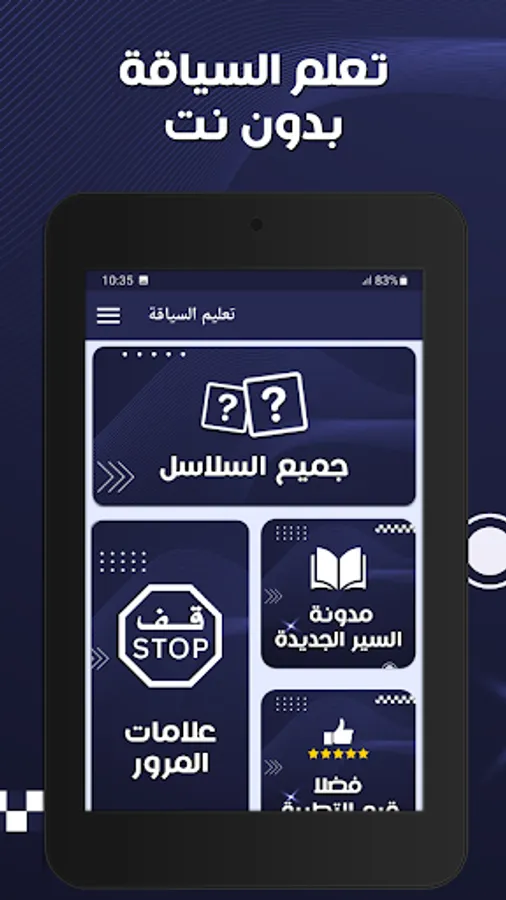 Thanks to the Driving Learning application, you can practice the Permian questions at any time without the need for a computer, as it includes free chains of training for driving license exam questions, a new traffic blog, an explanation of traffic signs