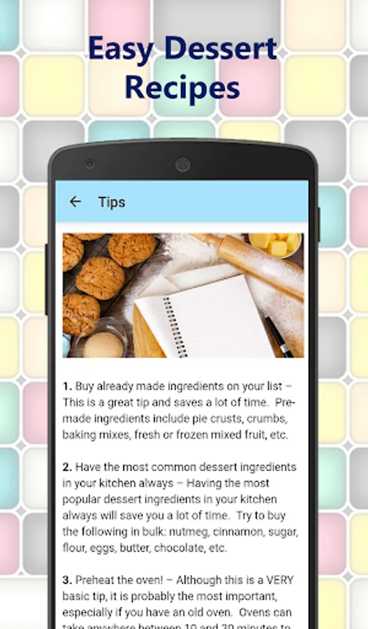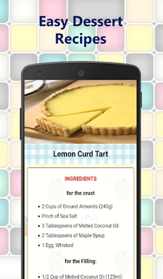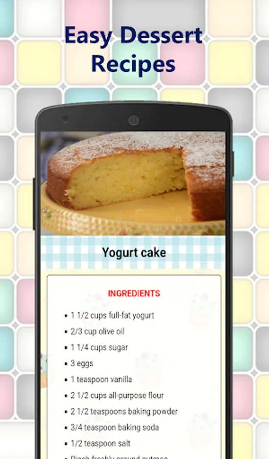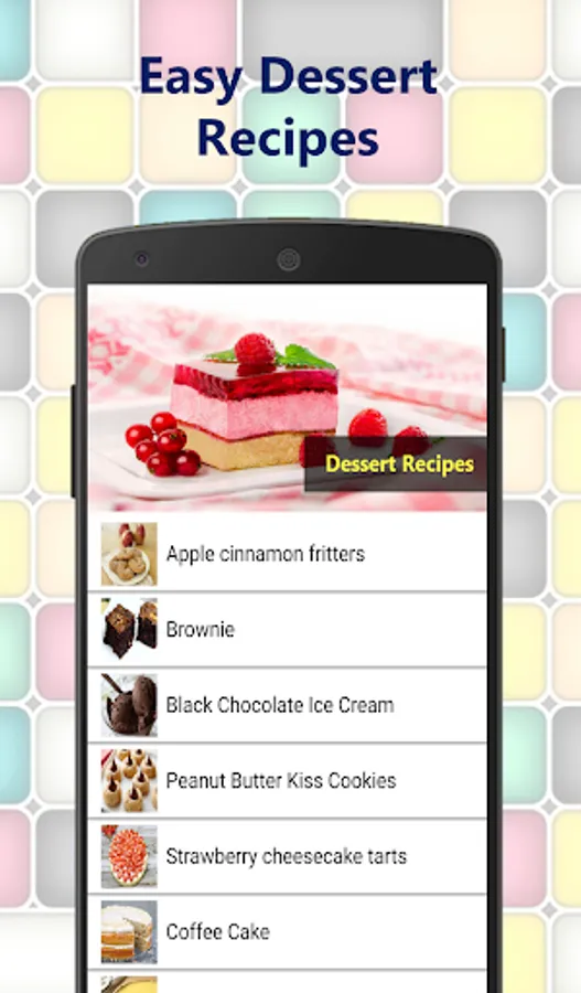 Easy dessert recipes app includes, among others: