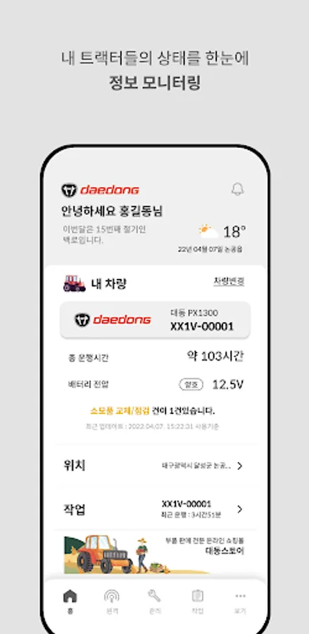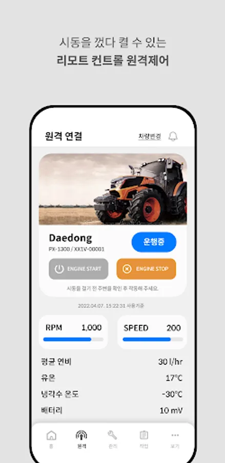 Use Daedong Connect to check the location of your vehicle anytime, anywhere and start the engine remotely with your smartphone.