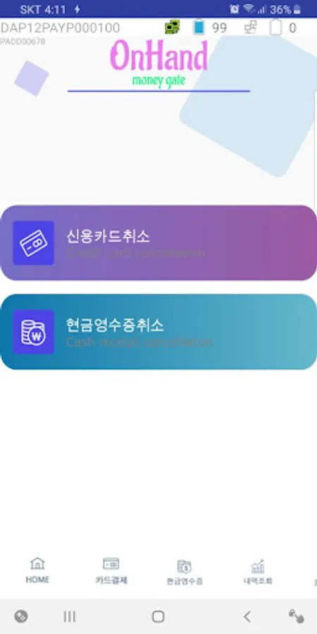 You can invoke the onHand app by plugin for eduStation2k's credit card / cash approval / cancellation process.
